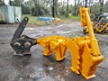 Concrete processor crusher, model JEC, has manual rotating head, reo bar cutter, opens to 800 wide, head plate has 80 pins, centres are 500, distance between ears 320 to 340. Unit weighs 2 ton.